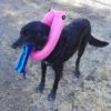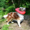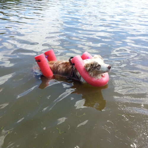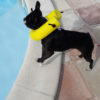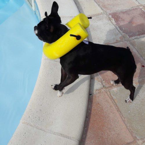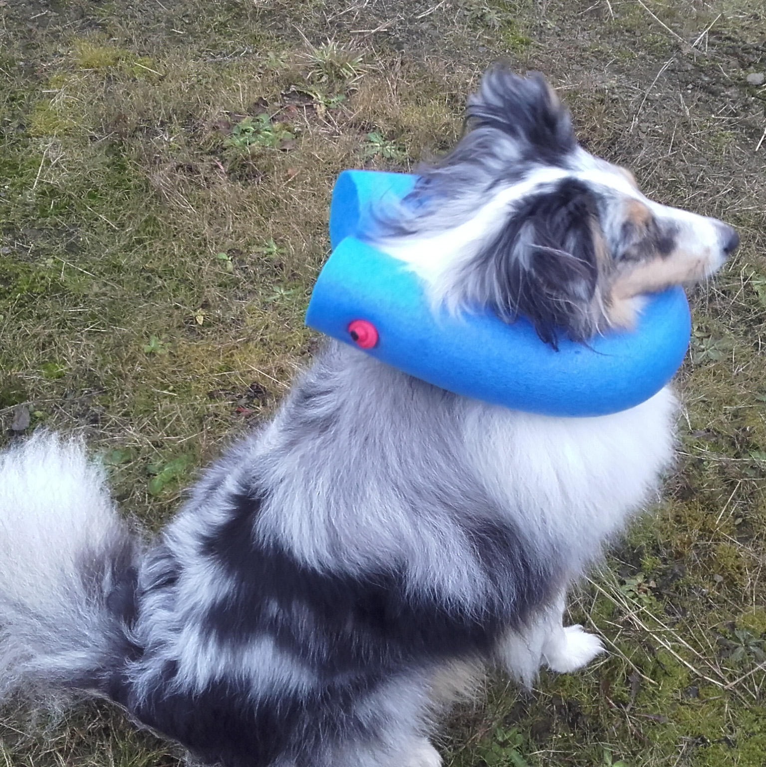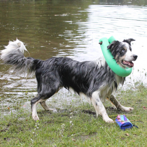 The Pro-Swim Safe fits comfortably but securely around the dog’s neck like a big collar. The Pro-Swim Safe gives dogs more confidence in the same way that safety armbands give to children. When swimming, the buoyancy of the Pro-Swim Safe lifts the dogs head and neck further out of the water, reducing the risk of water ingestion.