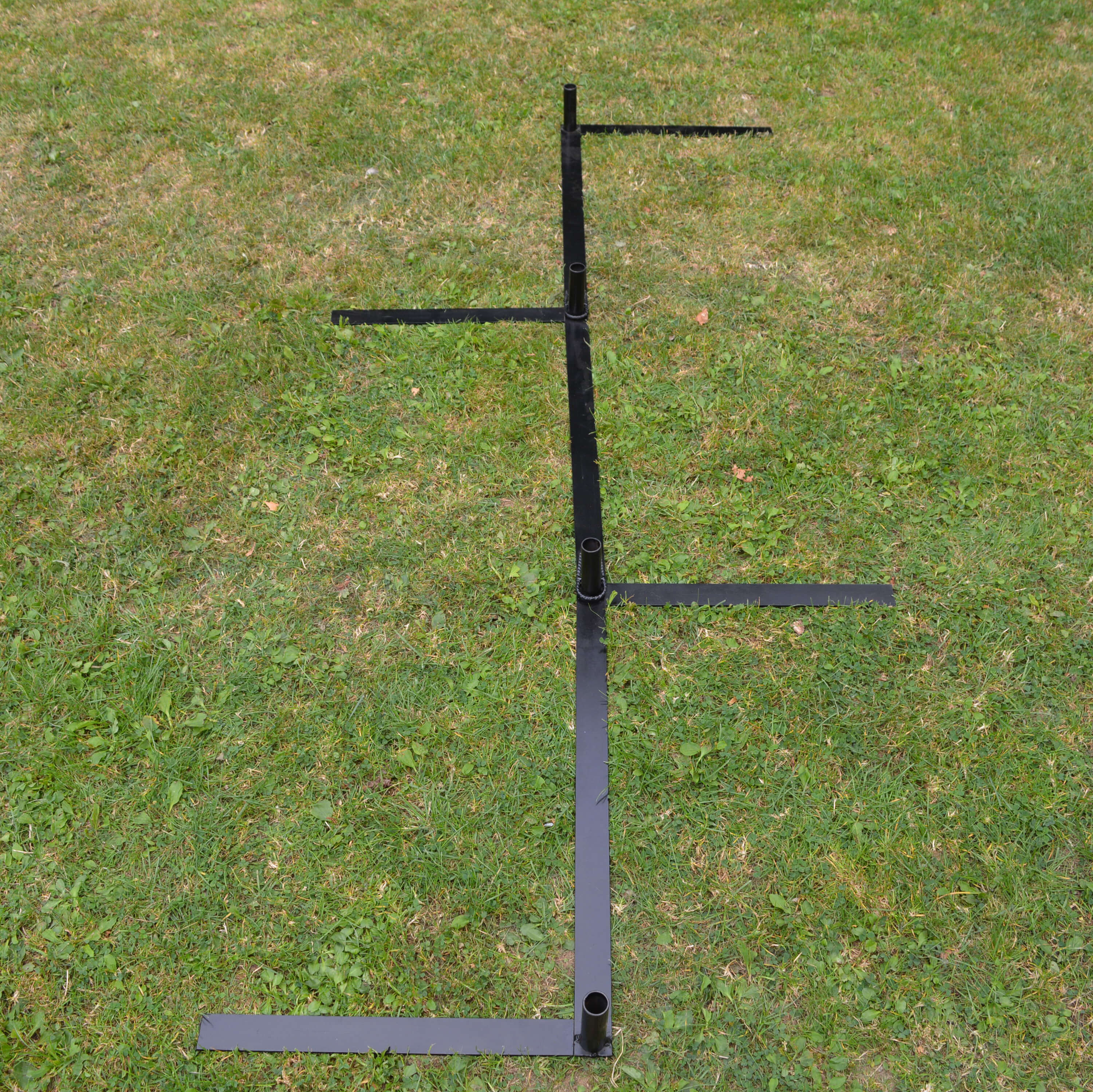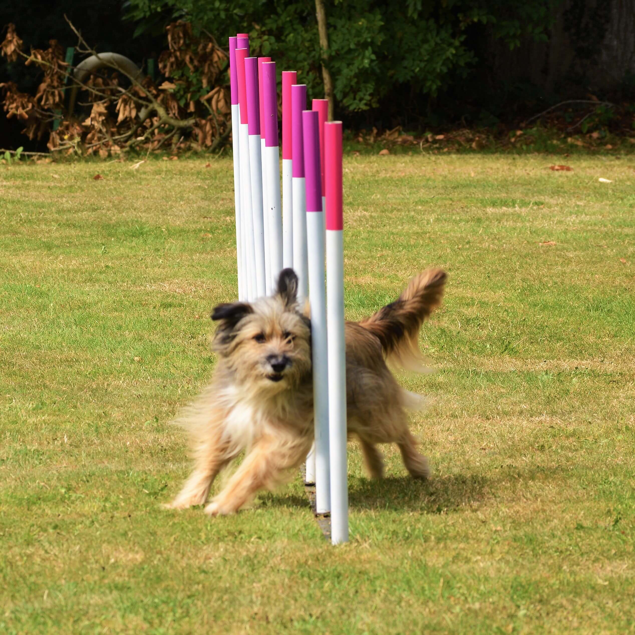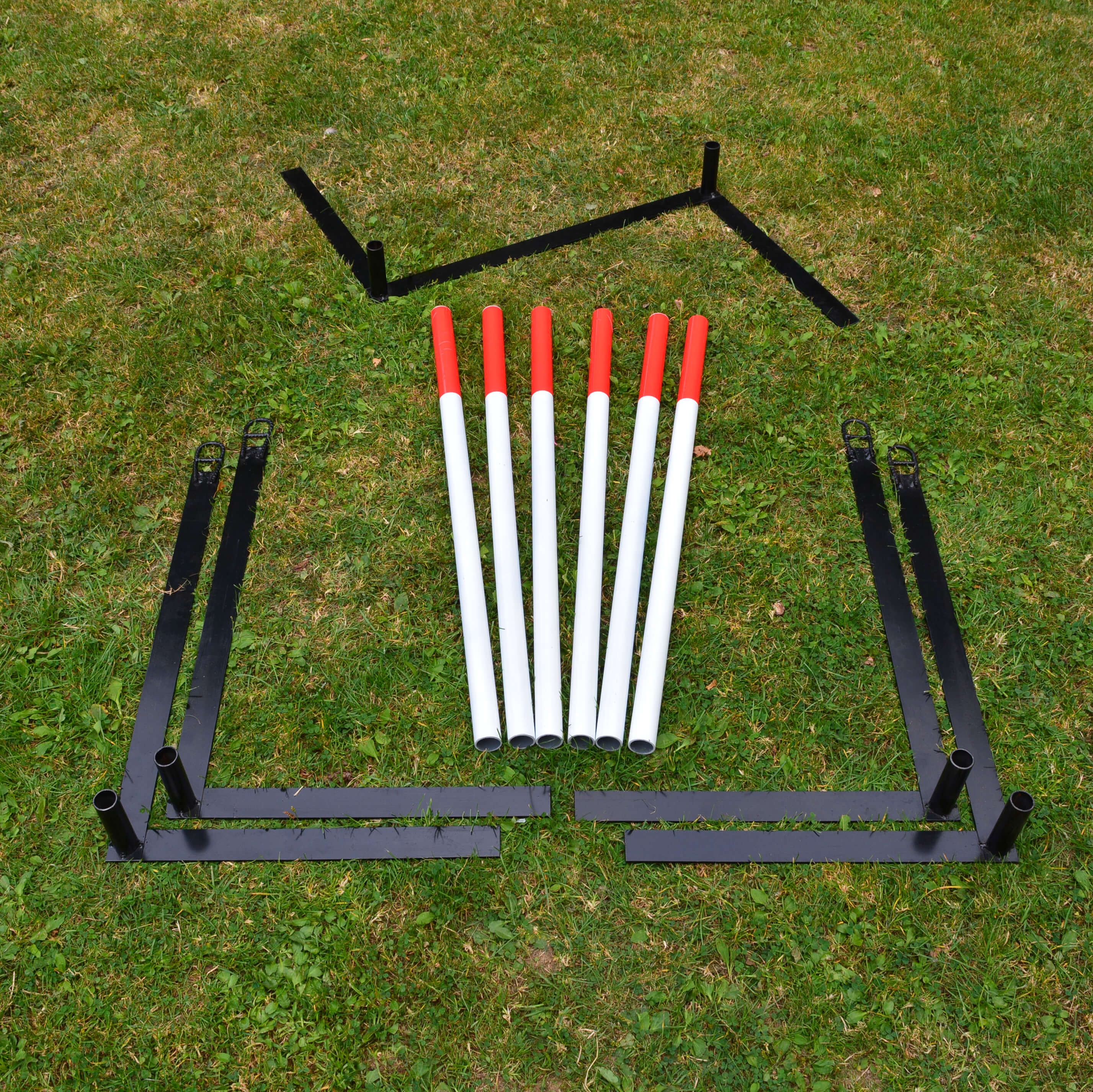 Ajustable weaves that can be set up in a straight line for regular use or set up as channal weaves for training.